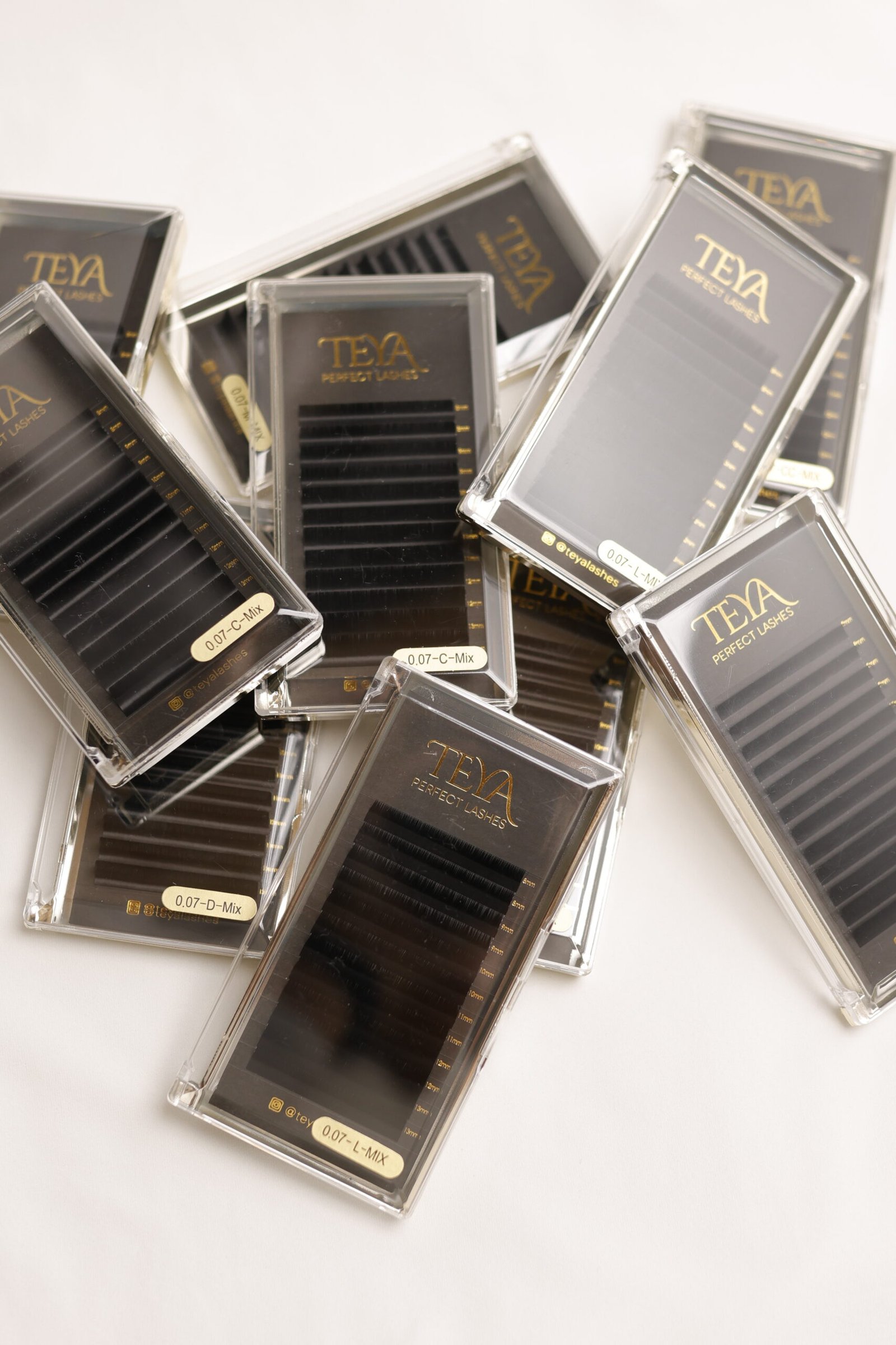 TEYA was born from a love for elevated artistry and a belief that every detail matters. Our lashes are crafted for professionals who want more than just materials — they want tools that inspire. With deep matte-black fibers, weightless flexibility, and precise curls, TEYA empowers lash artists to create work that feels both effortless and extraordinary. We combine premium quality with thoughtful design, ensuring every lash fans smoothly, adheres seamlessly, and wears beautifully. Whether your style is soft and natural or bold and sculpted, TEYA supports your vision with products made to perform. TEYA isn’t just a brand — it’s a standard. A promise of consistency, creativity, and confidence behind every set.